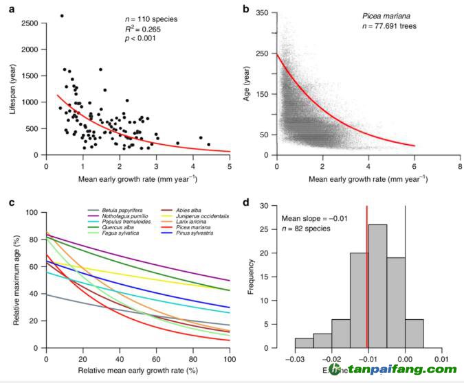 從樹的年輪中得到最大壽命和生長率的關(guān)系