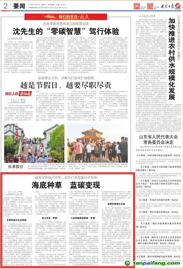 近日,大眾日?qǐng)?bào)以《海底種草 藍(lán)碳變現(xiàn)》為題,報(bào)道威海發(fā)揮海洋優(yōu)勢(shì),加快打造藍(lán)碳經(jīng)濟(jì)高地的經(jīng)驗(yàn)做法。以下為報(bào)道全文——