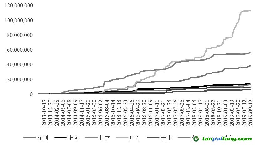 圖為我國交易所碳排放權(quán)配額累計(jì)成交量
