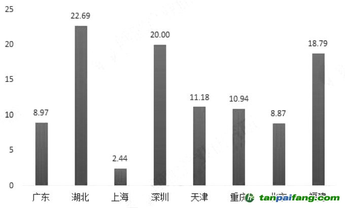 圖為2018年我國碳排放交易價(jià)格區(qū)域?qū)Ρ?本%文$內(nèi)-容-來-自;中_國_碳|排 放_交-易^網(wǎng)^t an pa i fang . c om