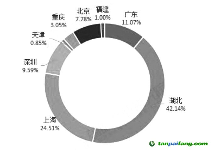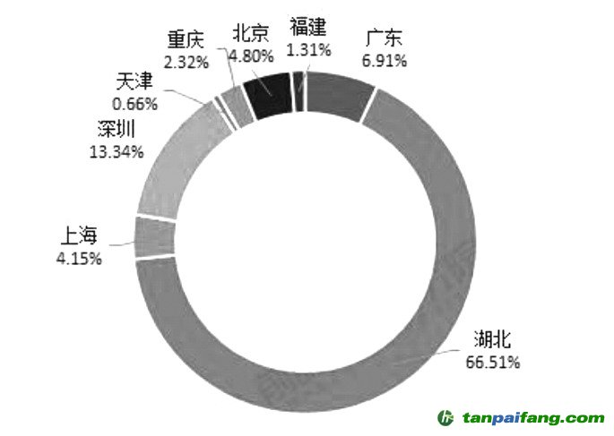 圖為2013—2018年我國碳排放交易額區(qū)域分布情況 本%文$內(nèi)-容-來-自;中_國_碳|排 放_交-易^網(wǎng)^t an pa i fang . c om