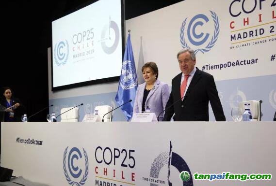 聯(lián)合國秘書長古特雷斯和聯(lián)合國氣候變化框架公約的執(zhí)行秘書帕特里夏·伊斯皮諾薩在氣候大會現(xiàn)場。