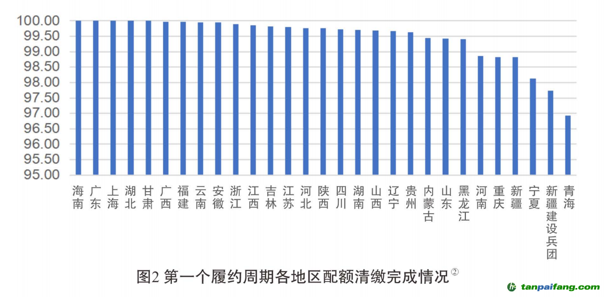 截至2021年12月31日,全國碳市場總體配額履約率為99.5%,共有1833家重點排放單位按時足額完成配額清繳,178家重點排放單位部分完成配額清繳。從各地區(qū)履約完成情況看,海南、廣東、上海、湖北、甘肅五個省市全部按時足額完成配額清繳。 本`文@內(nèi)/容/來/自:中-國^碳-排-放^*交*易^網(wǎng)-tan pai fang. com