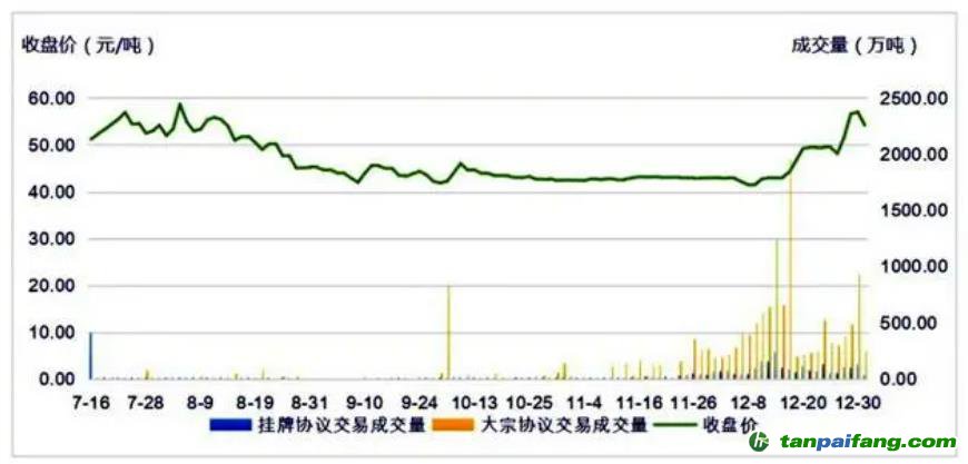報(bào)告稱,全國(guó)碳市場(chǎng)第一個(gè)履約周期共運(yùn)行114個(gè)交易日,成交均價(jià)42.85元/噸,每日收盤價(jià)在40~60元/噸之間波動(dòng)。