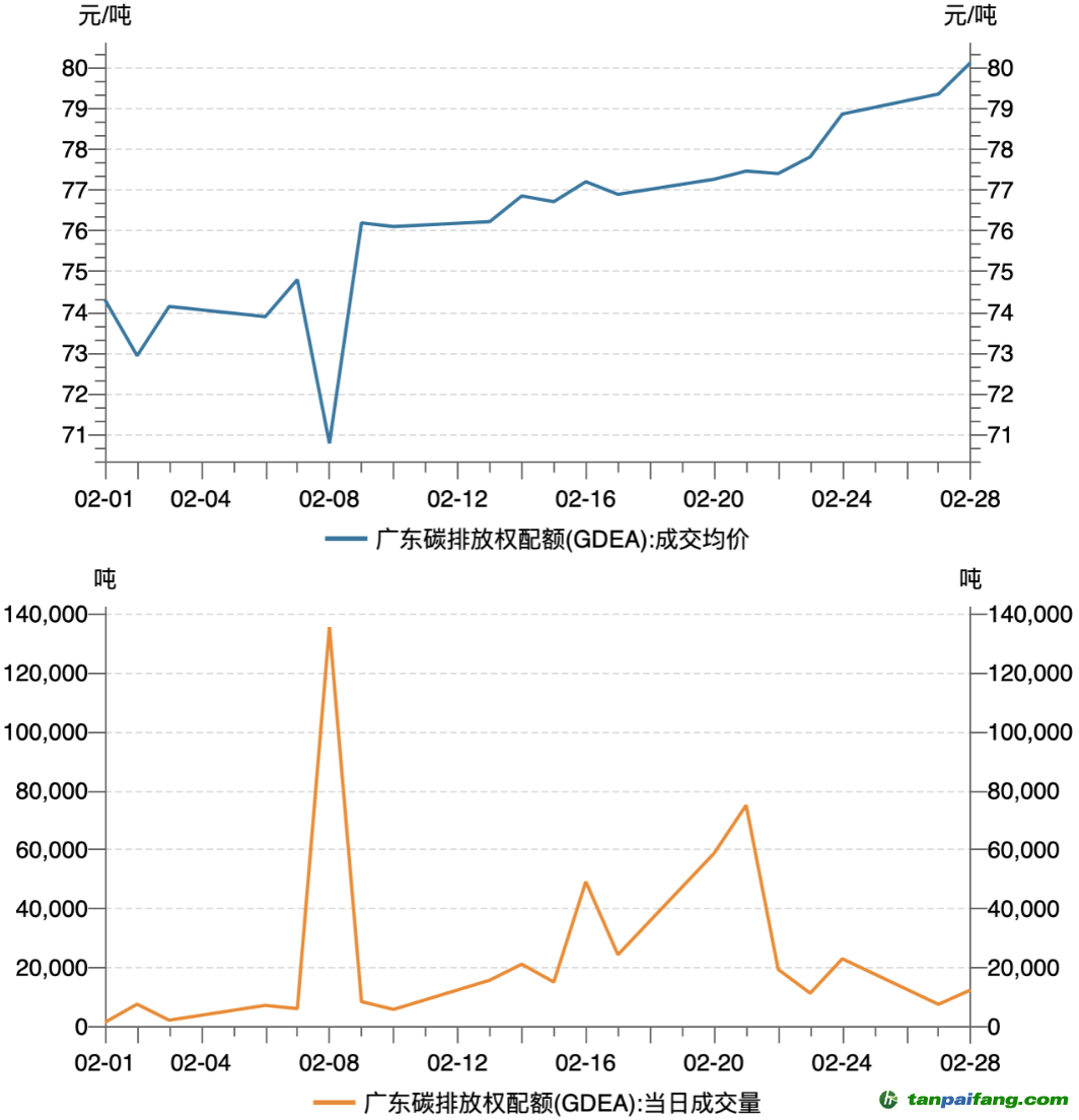 圖5:廣東碳市場(chǎng)2月交易數(shù)據(jù) 本%文$內(nèi)-容-來(lái)-自;中_國(guó)_碳|排 放_(tái)交-易^網(wǎng)^t an pa i fang . c om
