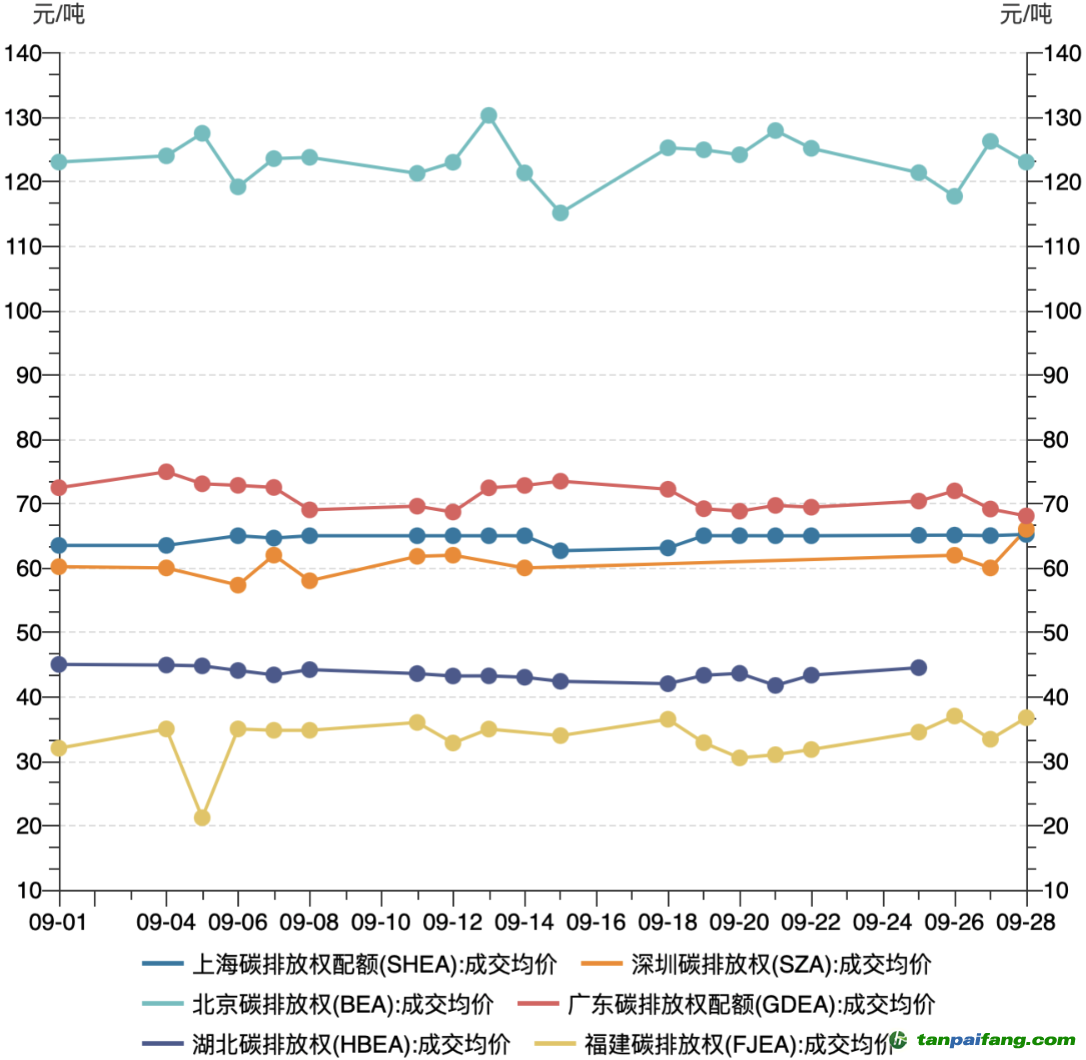 地方碳市場方面,北京碳市場履約截止日期為10月31日,履約期的臨近促進(jìn)了交易發(fā)生。由于8月末的履約期已過,深圳碳市場活躍度大大降低。 本`文-內(nèi).容.來.自:中`國^碳`排*放*交^易^網(wǎng) ta np ai fan g.com