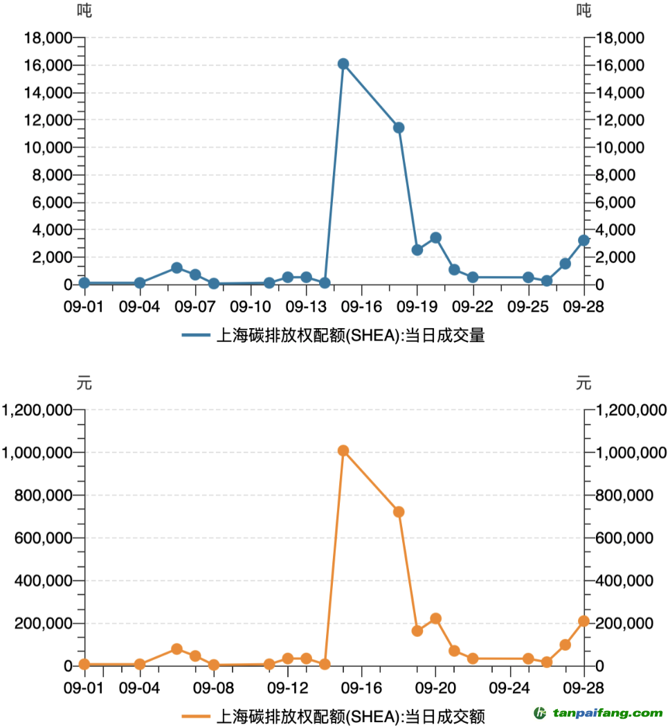 圖4:上海碳市場9月掛牌交易數(shù)據(jù) 本/文-內(nèi)/容/來/自:中-國-碳-排-放-網(wǎng)-tan pai fang . com