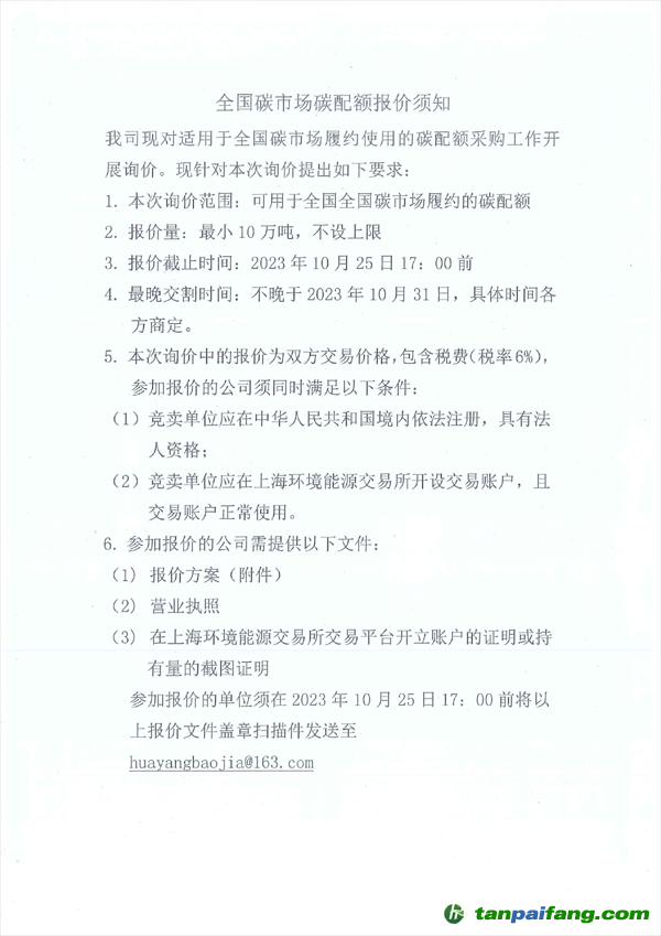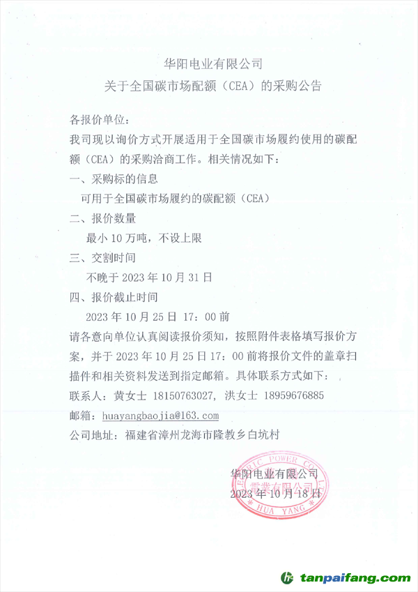 最小10萬(wàn)噸,不設(shè)上限!華陽(yáng)電業(yè)全國(guó)碳配額(CEA)采購(gòu)公告