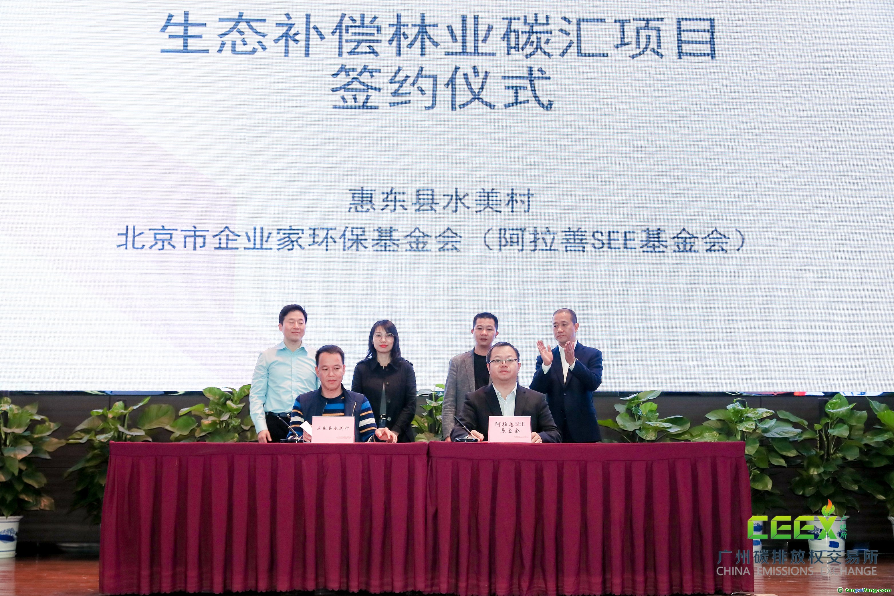 隨后在廣東省生態(tài)環(huán)境廳應對氣候變化與交流合作處副處長陳毅軍、廣州碳排放權交易所董事長葉軍的見證下,廣碳所與生態(tài)補償平臺共建單位:廣東省碳普惠創(chuàng)新發(fā)展中心主任、中國質(zhì)量認證中心廣州分中心、阿拉善SEE基金會珠江項目中心和廣東省應對氣候變化研究中心簽署了戰(zhàn)略合作協(xié)議。同時,在惠東縣林業(yè)局和日立電梯企業(yè)的見證下,生態(tài)補償平臺首個落地項目方代表:惠東縣水美村與阿拉善SEE珠江項目中心簽署了合作協(xié)議。