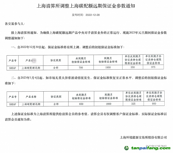 12月28日,上海環(huán)境能源交易所發(fā)布上海清算所調(diào)整上海