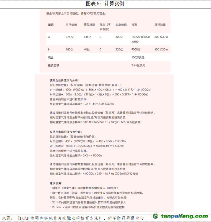 而公司價(jià)值(分母)則主要是指對(duì)于其所持有的上市公司的包括現(xiàn)金(EVIC)在內(nèi)的企業(yè)價(jià)值。而對(duì)于私人公司的交易債券,則是公司總股本和債務(wù)的總和,可以在客戶的資產(chǎn)負(fù)債表上找到,因?yàn)闆](méi)有可參考的股票市場(chǎng)價(jià)值。 本`文@內(nèi)/容/來(lái)/自:中-國(guó)^碳-排-放^*交*易^網(wǎng)-tan pai fang. com