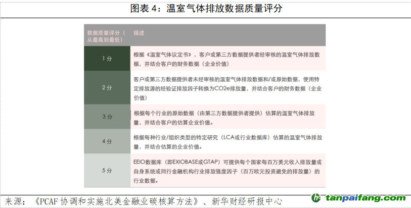 從數(shù)據(jù)來(lái)源來(lái)看,對(duì)于選項(xiàng)1(報(bào)告的排放量),PCAF建議直接從借款人或被投資公司(例如公司可持續(xù)發(fā)展報(bào)告)或第三方數(shù)據(jù)提供者收集排放量,比如CDP、彭博、MSCI、Sustainalytics、S&P/Trucost和ISSESG。數(shù)據(jù)提供者通常會(huì)提供范圍1和2排放數(shù)據(jù)。PCAF鼓勵(lì)使用最新的可用數(shù)據(jù)并提及數(shù)據(jù)來(lái)源、報(bào)告期或發(fā)布日期。 內(nèi)-容-來(lái)-自;中_國(guó)_碳_0排放¥交-易=網(wǎng) t an pa i fa ng . c om