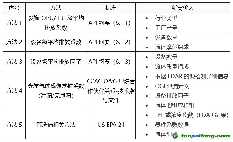 盡管石油和天然氣行業(yè)非常建議估算和控制逸散性排放,但用于逸散性排放量化的全球逸散性排放標(biāo)準(zhǔn)是非約束性指南,而不是規(guī)則、法規(guī)或政策;其中行業(yè)可以自由使用任何方法來(lái)估算逸散性排放。盡管如此,石油和天然氣行業(yè)仍在不斷努力制定甲烷排放測(cè)量法規(guī),以進(jìn)行有效監(jiān)測(cè)并最終設(shè)定減排目標(biāo)。用于估計(jì)排放量的方法的選擇取決于如何使用估計(jì)值以及所需的準(zhǔn)確度。相對(duì)于精度而言,使用來(lái)自直接測(cè)量的站點(diǎn)特定數(shù)據(jù)的方法優(yōu)于其他方法。下表顯示了逸散性排放量化方法。 本`文-內(nèi).容.來(lái).自:中`國(guó)^碳`排*放*交^易^網(wǎng) ta np ai fan g.com