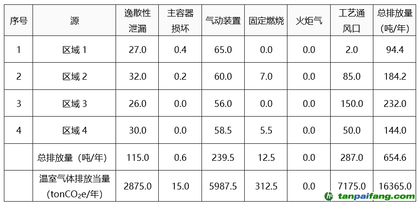 基于前面提到的所有適用甲烷來(lái)源的方法,在全廠范圍內(nèi)進(jìn)行準(zhǔn)確的量化,取得工廠整體甲烷排放量。下表顯示了捕獲氣體處理廠甲烷值的示例。 本*文`內(nèi)/容/來(lái)/自:中-國(guó)-碳^排-放“交|易^網(wǎng)-tan pai fang . c o m