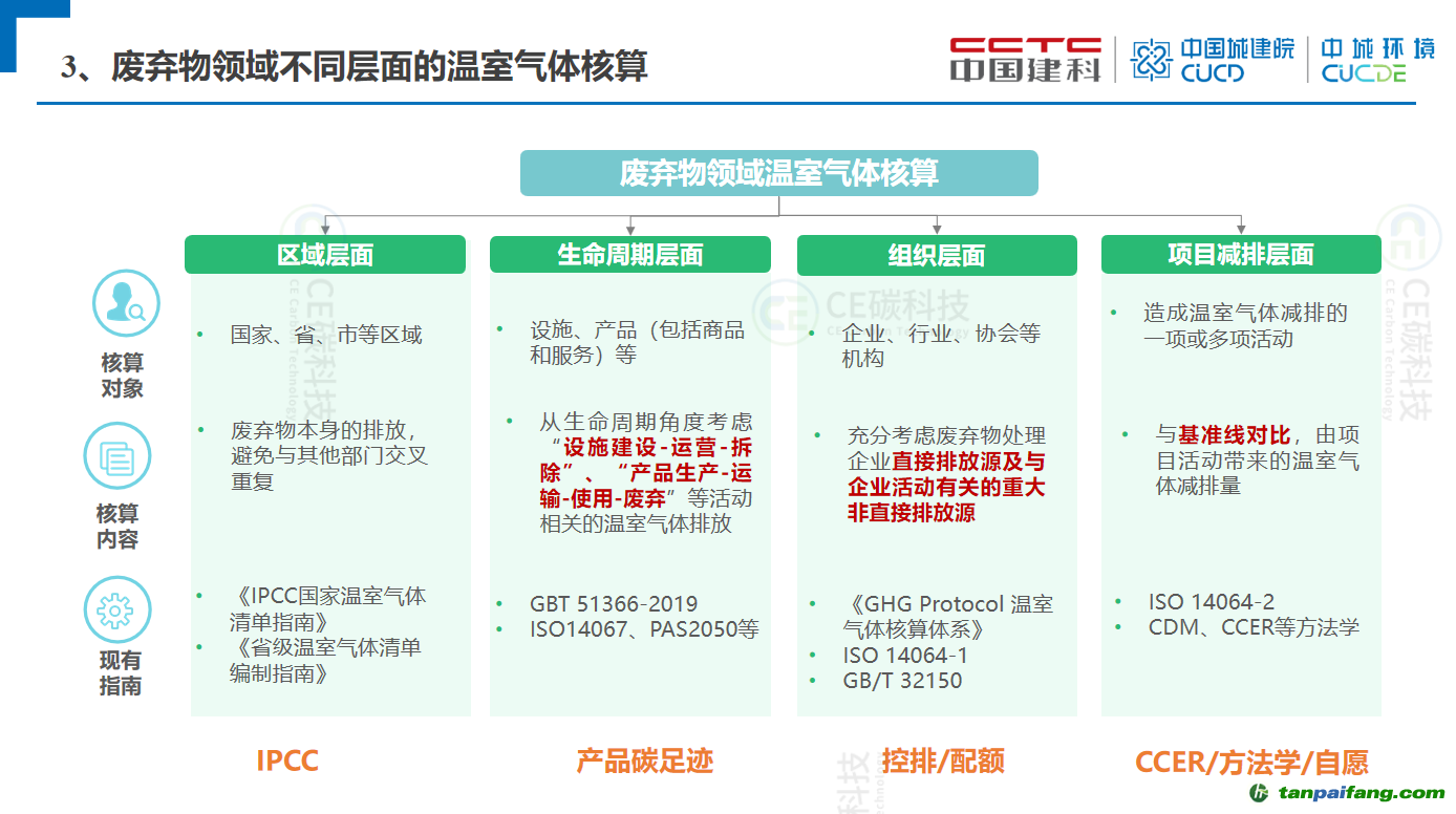 對于廢棄物領域/有機垃圾溫室氣體核算,由于邊界條件、考慮范圍、核算方式不同,其核算結果也是不一樣,因此,我們發(fā)現(xiàn),即使是類似的項目,其溫室氣體排放或減排量也存在較大的差距。根本原因在于目前大家并沒有將溫室氣體核算放在同一個維度或同一個層級去比較。目前國家的溫室氣體排放可以從區(qū)域層面、全生命周期層面、組織層面和項目減排層面四個維度去理解與核算。 禸*嫆唻@洎:狆國湠棑倣茭昜蛧 τāńpāīfāńɡ.cōm