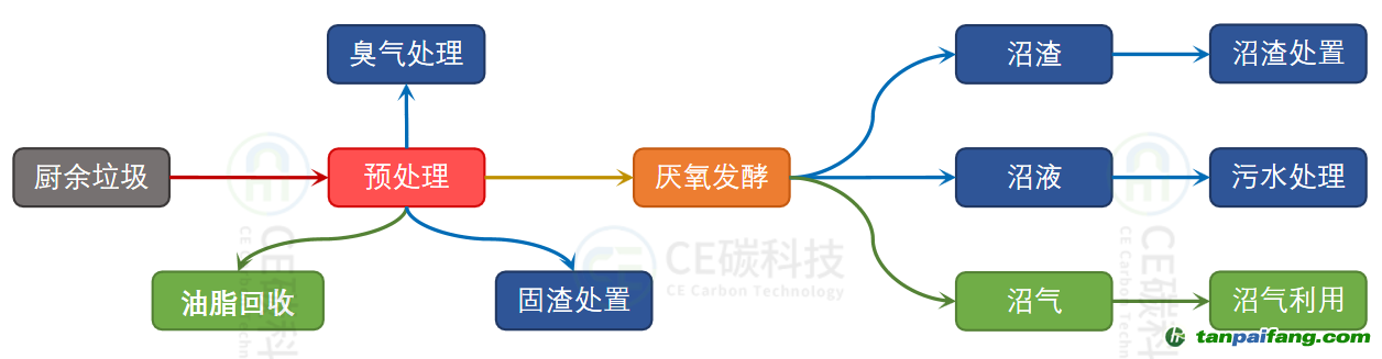 圖1 廚余垃圾厭氧發(fā)酵項目工藝流程
