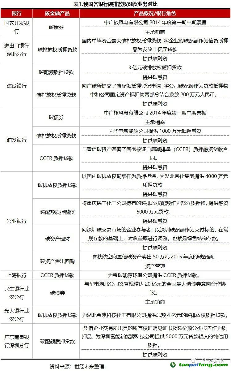 業(yè)務(wù)發(fā)展:各銀行碳排放權(quán)融資業(yè)務(wù)對(duì)比
