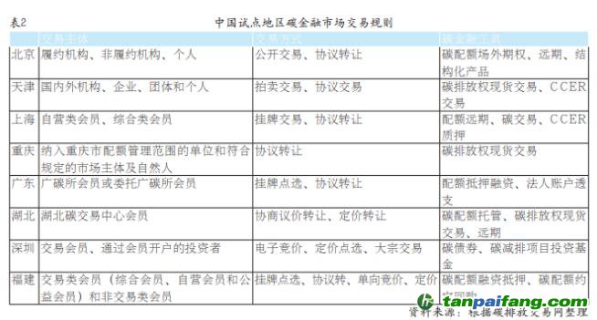 中國有八個(gè)省市開展碳排放權(quán)交易試點(diǎn),不同地方在交易主體、配額分配機(jī)制、