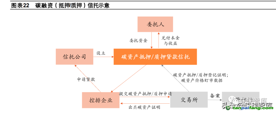 碳融資信托:碳融資類(lèi)信托是信托公司設(shè)立信托,以碳資產(chǎn)為抵質(zhì)押物,向融資人發(fā)放貸款,或設(shè)立信托,買(mǎi)入返售融資人 的碳資產(chǎn)。例如,興業(yè)信托設(shè)立“利豐 A016 碳權(quán) 1 號(hào)集合資金信托計(jì)劃”,該信托計(jì)劃以海峽股權(quán)交易中心碳排放權(quán)公開(kāi) 交易價(jià)格作為估價(jià)標(biāo)準(zhǔn),通過(guò)受讓福建三鋼閩光(6.890, -0.06, -0.86%)股份有限公司 100 萬(wàn)碳排放權(quán)收益權(quán)的方式,向其提供綠色融資。