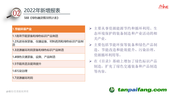 早在2013年,原銀監(jiān)會(huì)就建立起綠色信貸統(tǒng)計(jì)制度,定期組織銀行業(yè)金融機(jī)構(gòu)開展綠色信貸統(tǒng)計(jì)工作:一是統(tǒng)計(jì)涉及環(huán)境保護(hù)、安全生產(chǎn)等重大風(fēng)險(xiǎn)企業(yè)的信貸情況(T104報(bào)表);二是統(tǒng)計(jì)節(jié)能環(huán)保項(xiàng)目及服務(wù)貸款情況,綠色信貸資產(chǎn)質(zhì)量情況,貸款支持的節(jié)能環(huán)保項(xiàng)目所形成的年節(jié)能減排能力等情況(T105報(bào)表)。 本/文-內(nèi)/容/來/自:中-國(guó)-碳-排-放-網(wǎng)-tan pai fang . com
