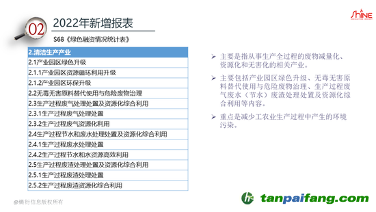 S68相比于人行《綠色貸款專項(xiàng)統(tǒng)計(jì)制度》,兩者之間求同存異。如,節(jié)能環(huán)保行業(yè)在《目錄》基礎(chǔ)上增加了綠色標(biāo)識(shí)產(chǎn)品制造,擴(kuò)充了綠色交通裝備和產(chǎn)品制造等內(nèi)容;清潔能源產(chǎn)業(yè)則未將《目錄》中的核電、油氣開采納入統(tǒng)計(jì)。
