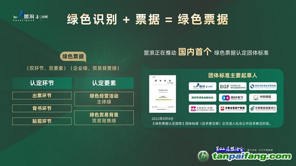 今年,由盟浪牽頭組織起草,央財(cái)綠金院、深圳市綠金協(xié)、深圳市標(biāo)院、盈科票據(jù)等共同參與的我國(guó)首個(gè)“綠色票據(jù)認(rèn)定”團(tuán)體標(biāo)準(zhǔn)已經(jīng)正式啟動(dòng)編制,將從標(biāo)準(zhǔn)層面解決綠色票據(jù)概念界定不清晰、綠色票據(jù)認(rèn)定標(biāo)準(zhǔn)不統(tǒng)一、傳統(tǒng)綠色認(rèn)定方法低效率等問題,推動(dòng)更加統(tǒng)一的綠色票據(jù)市場(chǎng)規(guī)范發(fā)展。目前該標(biāo)準(zhǔn)已經(jīng)公開征求意見,即將進(jìn)入最終評(píng)審發(fā)布環(huán)節(jié)。