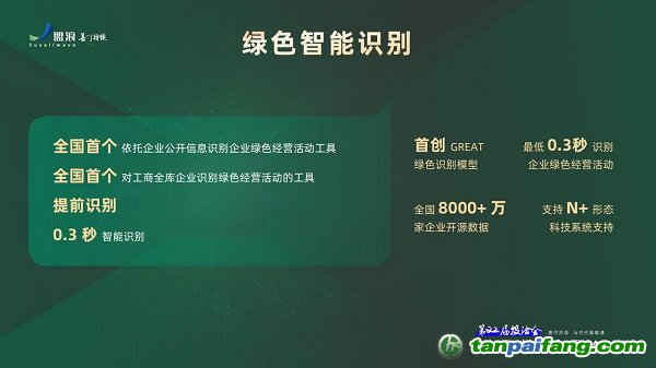 其中,盟浪作為一家聚焦可持續(xù)發(fā)展價(jià)值量化評(píng)估的金融科技企業(yè),通過標(biāo)準(zhǔn)構(gòu)建、量化評(píng)估、數(shù)據(jù)應(yīng)用、科技賦能四大核心能力,打造基于8000萬+家企業(yè)的綠色經(jīng)營(yíng)活動(dòng)特征及評(píng)估模型算法,為金融機(jī)構(gòu)在綠色信貸、綠色債券、綠色供應(yīng)鏈金融、綠色票據(jù)、ESG基金等諸多場(chǎng)景的業(yè)務(wù)落地提供科技和數(shù)據(jù)產(chǎn)品支撐。