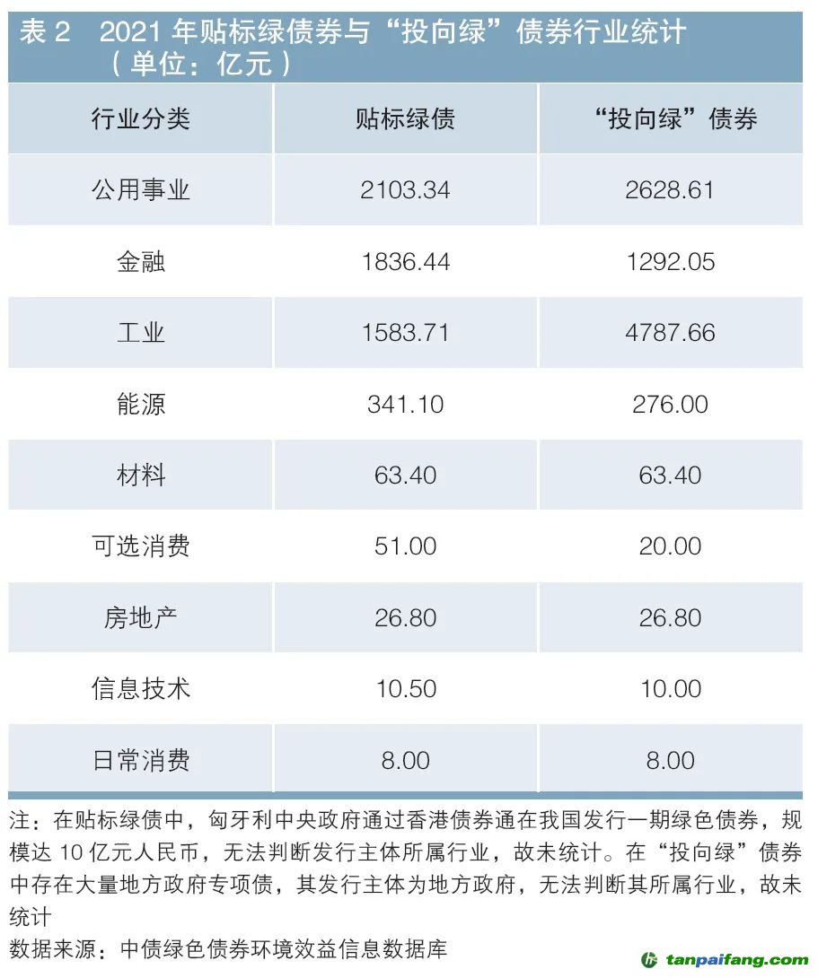 在“投向綠”債券中,發(fā)行規(guī)模最大的領(lǐng)域是工業(yè),達(dá)4787.66億元,占比為52.54%;公用事業(yè)緊隨其后,占比為28.85%;金融位列第三,占比為14.18%;其他行業(yè)占比較?。ㄒ妶D2)。 本*文@內(nèi)-容-來-自;中_國_碳^排-放*交-易^網(wǎng) t an pa i fa ng . c om