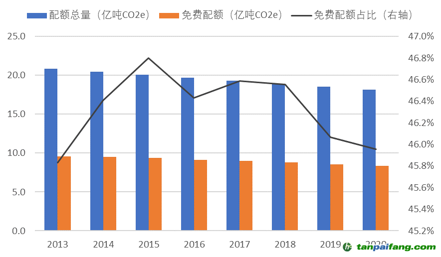 注:2020年免費(fèi)配額數(shù)據(jù)截止2020年6月 本+文`內(nèi).容.來(lái).自:中`國(guó)`碳`排*放*交*易^網(wǎng) t a np ai fan g.com