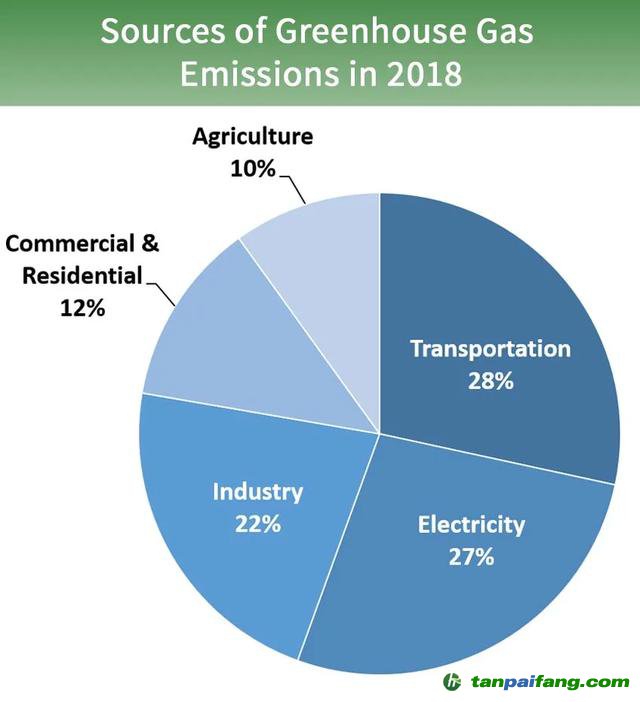 目前,中國已基本完成工業(yè)化進(jìn)程,經(jīng)濟(jì)將會得到進(jìn)一步發(fā)展。因此,未來中國分行業(yè)溫室氣體排放構(gòu)成,可參照其它全球領(lǐng)先工業(yè)國家的情況,以分析未來中國減排的目標(biāo)和方向。以美國為例,溫室氣體排放占比第一的是交通28%,其次是電力行業(yè)27%和工業(yè)22%(IEA 2018數(shù)據(jù))。