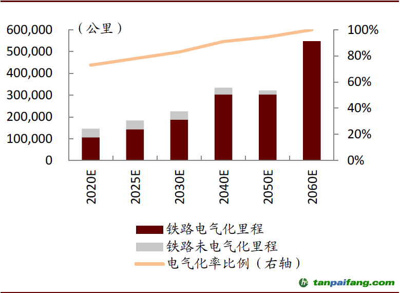 圖表: 鐵路電氣化率提升 內(nèi).容.來(lái).自:中`國(guó)`碳#排*放*交*易^網(wǎng) t a np ai f an g.com