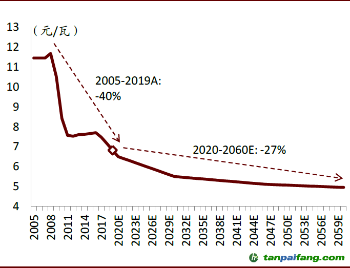 圖表: 光伏成本下降學(xué)習(xí)曲線