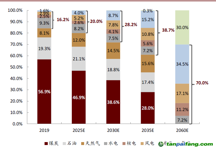 圖表: 能源結(jié)構(gòu)變化的三步走 本`文@內(nèi)-容-來(lái)-自;中^國(guó)_碳0排0放^交-易=網(wǎng) ta n pa i fa ng . co m