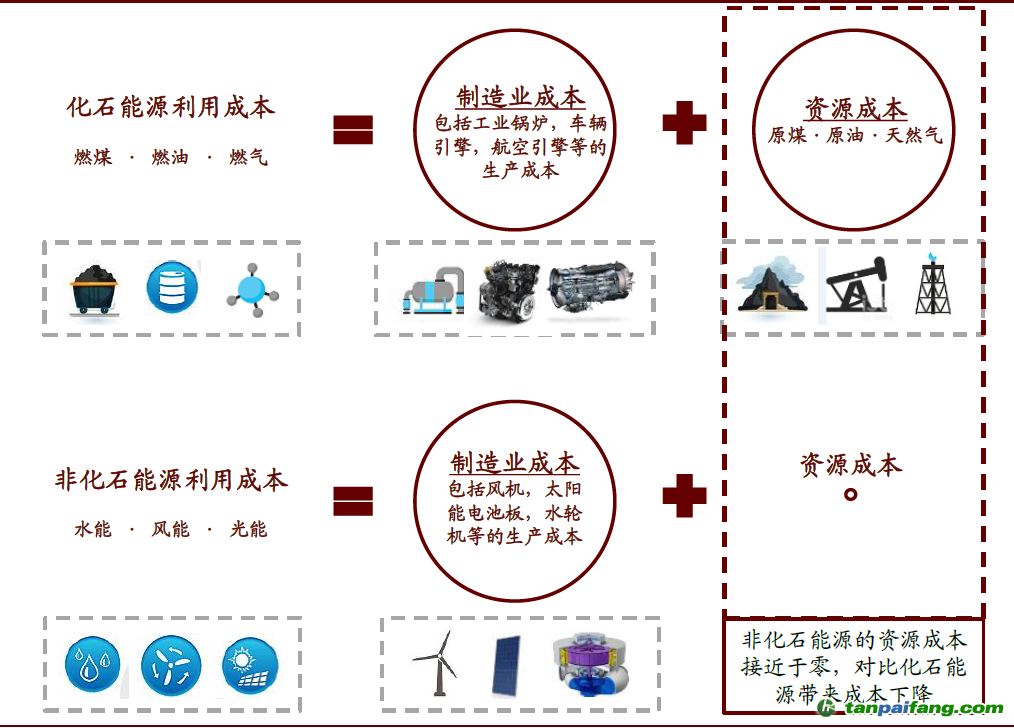 圖表: 非化石能源成本優(yōu)勢(shì)來(lái)自零資源成本和制造業(yè)屬性 本%文$內(nèi)-容-來(lái)-自;中_國(guó)_碳|排 放_(tái)交-易^網(wǎng)^t an pa i fang . c om
