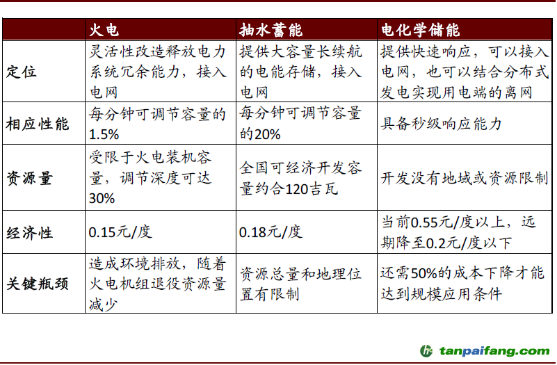圖表: 不同電力輔助服務(wù)資源優(yōu)劣勢(shì)對(duì)比
