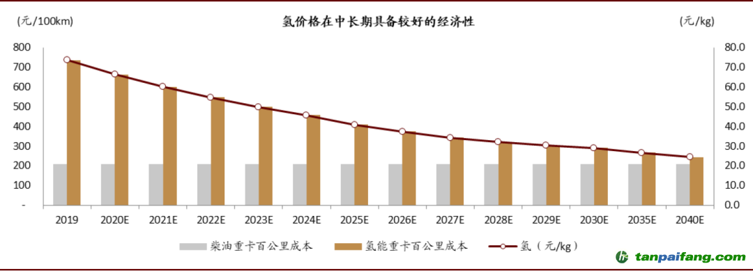 ?氫能具備能量密度與可商業(yè)化的充能時(shí)間。1)氫燃料電池適合對(duì)占用空間要求不高的交運(yùn)場(chǎng)景,例如商用車(chē)、航運(yùn)或者航空,因?yàn)楦哔|(zhì)量能量密度、低體積能量密度,同時(shí)其較快的充能速度也有利于商業(yè)化應(yīng)用。2)氫能或可用替代煤用作水泥窯的燃料。3)氫能冶金存在一定可行性。 本%文$內(nèi)-容-來(lái)-自;中_國(guó)_碳|排 放_(tái)交-易^網(wǎng)^t an pa i fang . c om