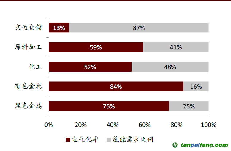 圖表: 幾個(gè)主要板塊的電氣化率預(yù)期以及預(yù)期氫能需求貢獻(xiàn)比例(2060年)