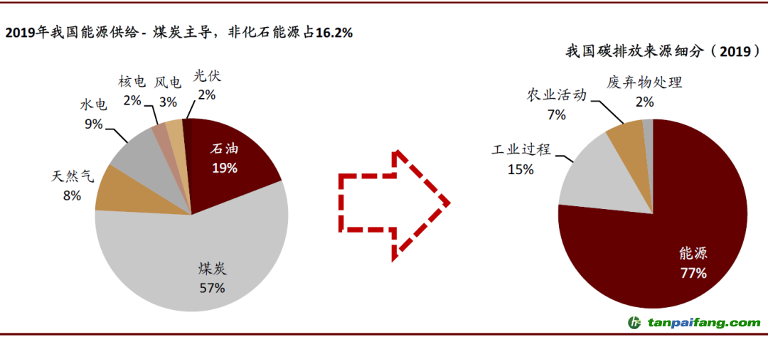 圖表: 當(dāng)前中國(guó)能源結(jié)構(gòu)和碳排放來(lái)源細(xì)分 本文@內(nèi)/容/來(lái)/自:中-國(guó)-碳^排-放-交易&*網(wǎng)-tan pai fang . com