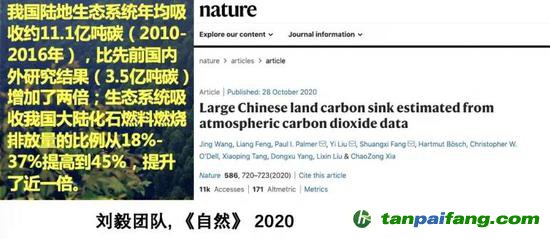 近期,大氣所劉毅團隊在《自然》上發(fā)表的一篇文章,就采用了這種大氣觀測評估方法,得出我國陸地生態(tài)系統(tǒng)年均吸收二氧化碳大概是11億噸,而國外研究結果遠低于11億噸。