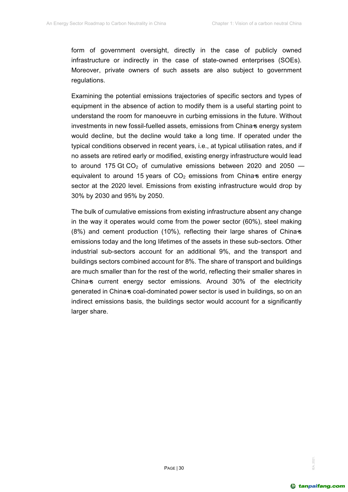 與此同時(shí),實(shí)現(xiàn)中國的氣候目標(biāo)不能僅僅依靠推廣可再生能源和電動(dòng)汽車,還需要解決源自現(xiàn)有化石燃料電廠、鋼廠、水泥窯和其他工業(yè)設(shè)施的巨大排放。如果中國現(xiàn)有的排放密集型能源基礎(chǔ)設(shè)施繼續(xù)以同樣方式運(yùn)作,那么從現(xiàn)在到 2060 年,其二氧化碳排放量將占到控制全球升溫 1.5℃所需的全球碳預(yù)算的三分之一。這尚不包括為滿足日益增長的需求而可能新建的工廠。 禸嫆@唻洎:狆國湠棑倣茭昜蛧 τāńpāīfāńɡ.cōm