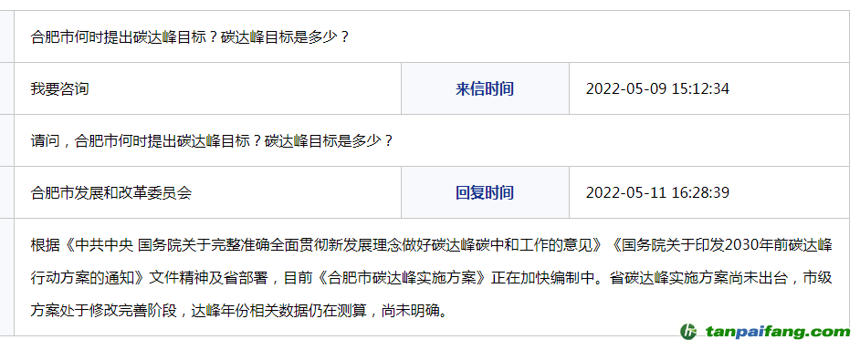 合肥市發(fā)展和改革委員會(huì)回復(fù):目前《合肥市碳達(dá)峰實(shí)施方案》正在加快編制中。省碳達(dá)峰實(shí)施方案尚未出臺(tái),市級(jí)方案處于修改完善階段,達(dá)峰年份相關(guān)數(shù)據(jù)仍在測(cè)算,尚未明確。 本+文`內(nèi)/容/來(lái)/自:中-國(guó)-碳-排-放-網(wǎng)-tan pai fang . com