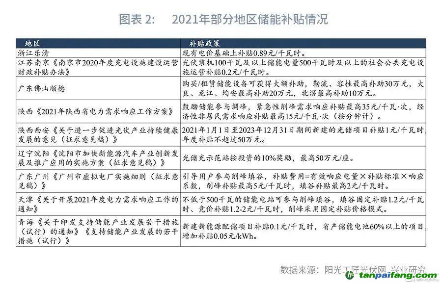 三是鼓勵有條件的地區(qū)先行先試,因地制宜發(fā)展新型儲能、抽水蓄能等,加快形成以儲能和調(diào)峰能力為基礎(chǔ)支撐的電力發(fā)展機(jī)制。目前,浙江、江蘇、廣東、陜西、遼寧等省份部分城市正通過地方補(bǔ)貼支持儲能設(shè)施的建設(shè)和運(yùn)營或者將要出臺相關(guān)措施,補(bǔ)貼金額約在0.1元/千瓦時(shí)到1元/千瓦時(shí)之間。