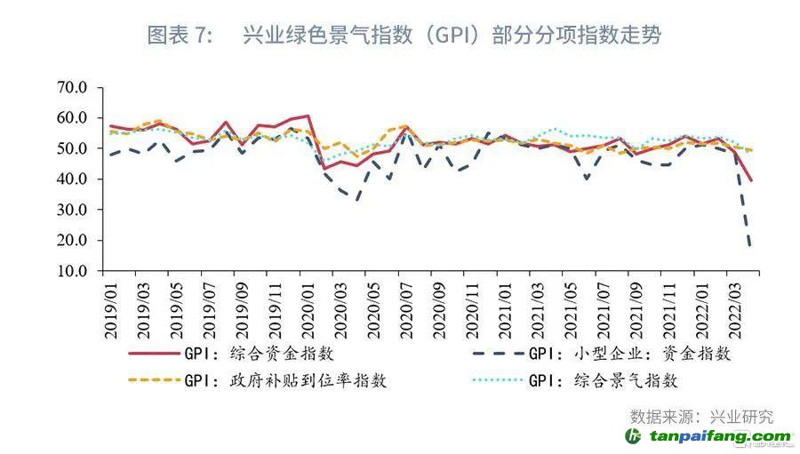 三是支持生態(tài)環(huán)境領(lǐng)域PPP項(xiàng)目。《意見》提出“采取多種方式支持生態(tài)環(huán)境領(lǐng)域政府和社會資本合作(PPP)項(xiàng)目,規(guī)范地方政府對PPP項(xiàng)目履約行為”。由于存在一定公益屬性,大部分生態(tài)環(huán)境領(lǐng)域的PPP項(xiàng)目回報(bào)機(jī)制以政府付費(fèi)為主,而很多項(xiàng)目存在資金需求量大、投資回報(bào)周期長的特點(diǎn),這時(shí)地方政府的履約行為將直接影響相關(guān)企業(yè)的資金周轉(zhuǎn)情況。興業(yè)研究自2018年起對綠色環(huán)保企業(yè)開展調(diào)研,并依據(jù)調(diào)研結(jié)果每月編制發(fā)布“興業(yè)綠色景氣指數(shù)”(GPI指數(shù)),從四年多的調(diào)研結(jié)果來看,資金周轉(zhuǎn)問題一直是綠色環(huán)保企業(yè)生產(chǎn)經(jīng)營過程中面臨的最主要問題之一,而綠色環(huán)保企業(yè)的資金周轉(zhuǎn)情況往往與政府補(bǔ)貼到位率密切相關(guān)(見圖表7),當(dāng)補(bǔ)貼到位率指數(shù)下降時(shí),資金指數(shù)往往下降更快、下降幅度也更大,特別是在中小型企業(yè)中尤為明顯。與此同時(shí),自我們調(diào)研開始以來,補(bǔ)貼到位率指數(shù)在超過70%的月份都低于GPI綜合景氣指數(shù),這也反映出綠色環(huán)保產(chǎn)業(yè)普遍存在補(bǔ)貼到位率相對較低的問題。《意見》提出“規(guī)范地方政府對PPP項(xiàng)目履約行為”將有助于改善生態(tài)環(huán)境領(lǐng)域PPP項(xiàng)目中政府付費(fèi)和補(bǔ)貼拖欠的問題。此外,進(jìn)一步深化生態(tài)環(huán)境領(lǐng)域價(jià)格機(jī)制改革,提高相關(guān)企業(yè)和PPP項(xiàng)目盈利能力,也是支持生態(tài)環(huán)境領(lǐng)域PPP項(xiàng)目發(fā)展的一種方式。