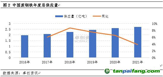 首先,國(guó)外工業(yè)化進(jìn)程起步較早,鋼鐵積蓄量較高,廢鋼產(chǎn)出相對(duì)富裕,而國(guó)內(nèi)鐵回收再利用工業(yè)體系依舊處于發(fā)展建設(shè)當(dāng)中,同時(shí)進(jìn)口廢鋼受到價(jià)格倒掛、國(guó)外資源供給緊張等因素影響,進(jìn)口廢鋼量較低,廢鋼整體供給量不足。根據(jù)卓創(chuàng)資訊統(tǒng)計(jì),2021年廢鋼總供應(yīng)量為2.7億噸,粗鋼產(chǎn)量為10.33億噸,轉(zhuǎn)爐廢鋼比16.69%,長(zhǎng)流程用廢鋼量達(dá)1.72億噸,電爐鋼比10.7%,按照15%的目標(biāo),廢鋼仍有4500萬噸左右的缺口。 本/文-內(nèi)/容/來/自:中-國(guó)-碳-排-放-網(wǎng)-tan pai fang . com