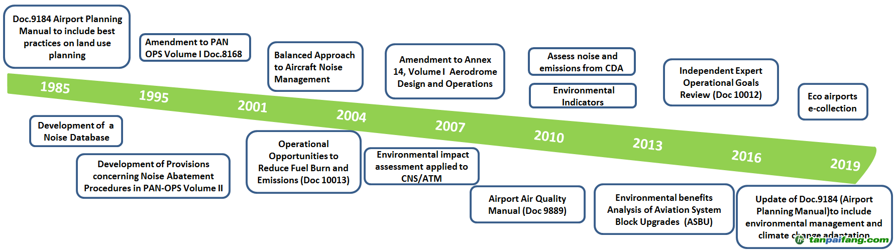 國際民用航空組織,簡稱國際民航組織(ICAO),成立于1947年,是聯(lián)合國系統(tǒng)中負責處理國際民航事務的專門機構。為了應對與機場運營有關的環(huán)境問題,如空氣和水的質量、土地管理、噪音和氣候變化等亟待采取行動的各項問題,國際民航組織制定并通過有關決議文件、發(fā)布生態(tài)機場指南、建立特別工作小組來應對有關生態(tài)、綠色、可持續(xù)機場的發(fā)展問題。