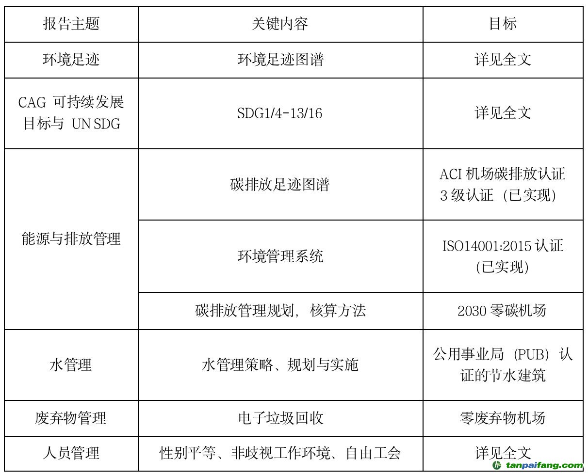 表17 新加坡樟宜國際機場可持續(xù)發(fā)展報告摘要(部分) 本`文@內/容/來/自:中-國^碳-排-放^*交*易^網(wǎng)-tan pai fang. com