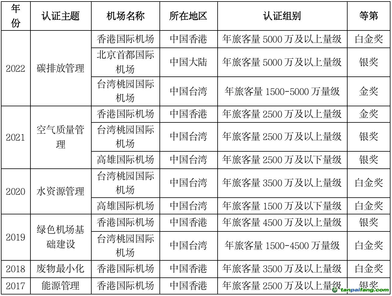 資料來源:根據(jù)ACI Asia-Pacific Green Airports Recognition(2017-2022)整理而成 內-容-來-自;中_國_碳_0排放¥交-易=網(wǎng) t an pa i fa ng . c om