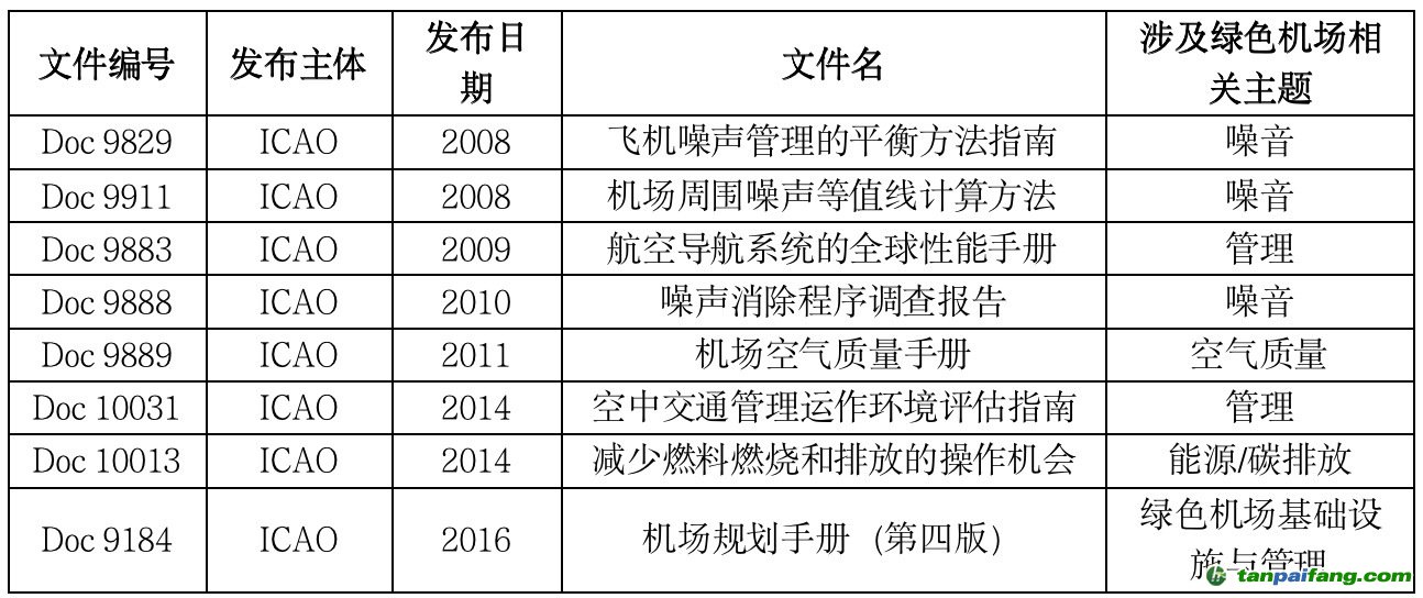 表5 ICAO發(fā)布的關于機場環(huán)境監(jiān)測、綠色機場建設的相關文件 本文+內-容-來-自;中^國_碳+排.放_交^易=網(wǎng) t a n pa ifa ng .c om
