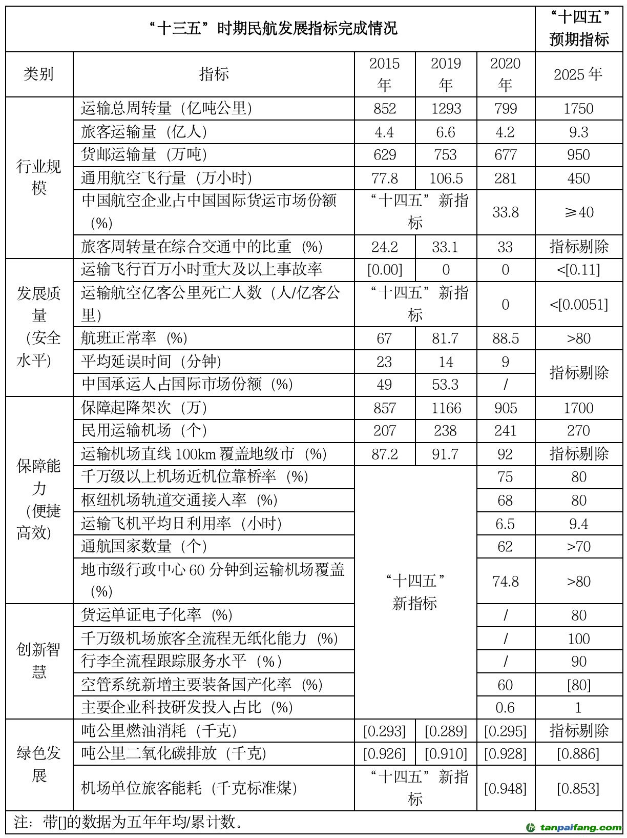 資料來源:根據(jù)《“十四五”民用航空發(fā)展規(guī)劃》整理得到 本文@內/容/來/自:中-國-碳^排-放-交易&*網(wǎng)-tan pai fang . com