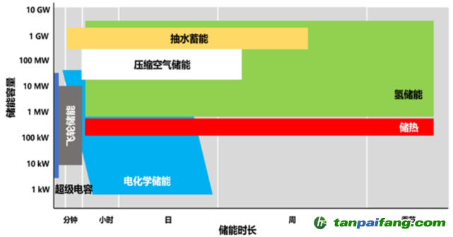 這里面我專(zhuān)門(mén)把儲(chǔ)能拎出來(lái),因?yàn)槲覀冊(cè)瓉?lái)強(qiáng)調(diào)的都是電源、電網(wǎng)和負(fù)荷,沒(méi)有談到儲(chǔ)能,現(xiàn)在不管是看待未來(lái)能源體系也好,看待這個(gè)領(lǐng)域的創(chuàng)新也好,甚至包括資本市場(chǎng)的估值也好,都要把儲(chǔ)能放到和源網(wǎng)荷同等重要的地位。這張圖上,橫軸就是往長(zhǎng)時(shí)儲(chǔ)能的調(diào)節(jié)發(fā)展,縱軸可以看到儲(chǔ)能裝機(jī)量的增長(zhǎng),是2030年前儲(chǔ)能發(fā)展的路線圖。